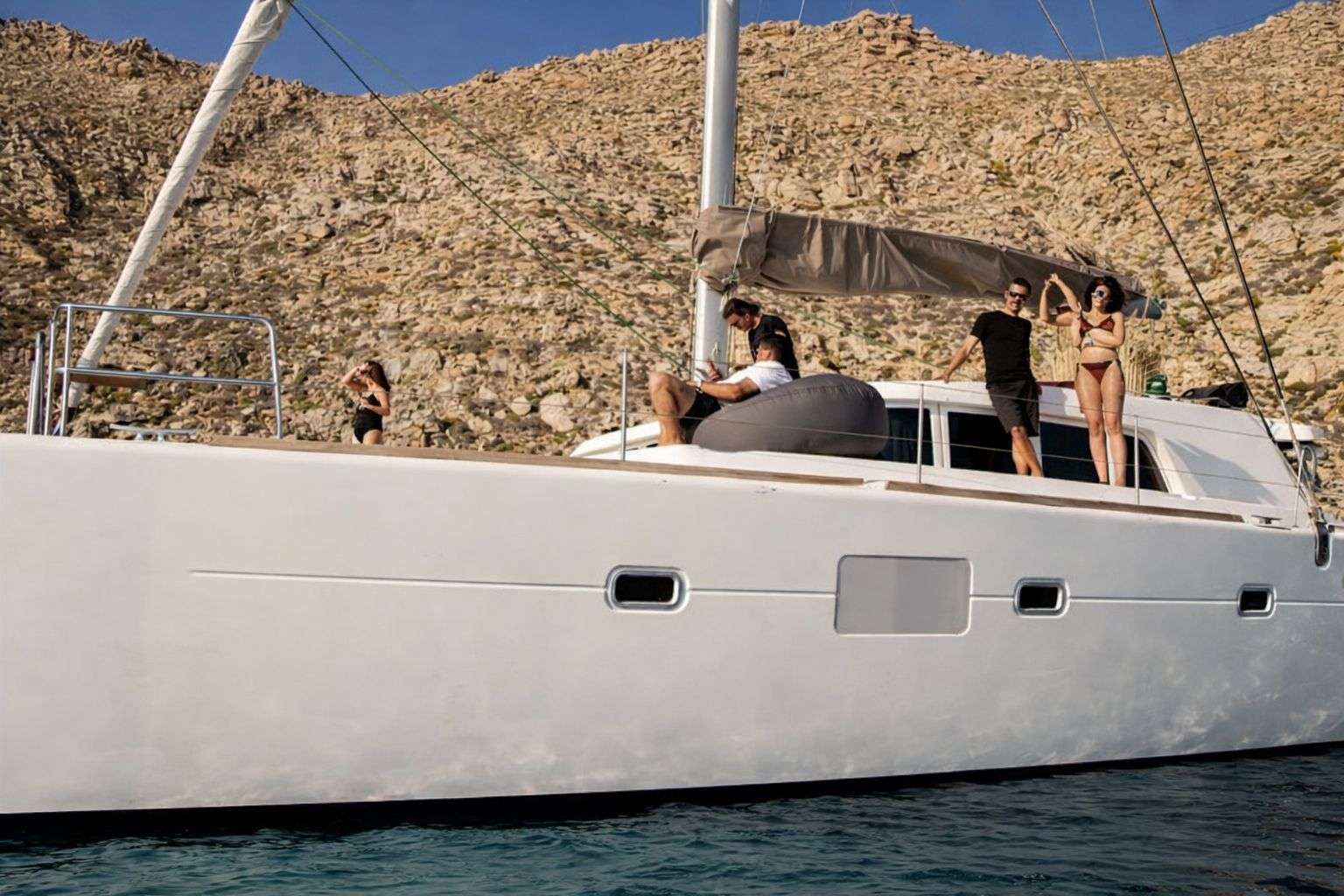 - Cruise the Mykonos coastline aboard a modern, spacious catamaran